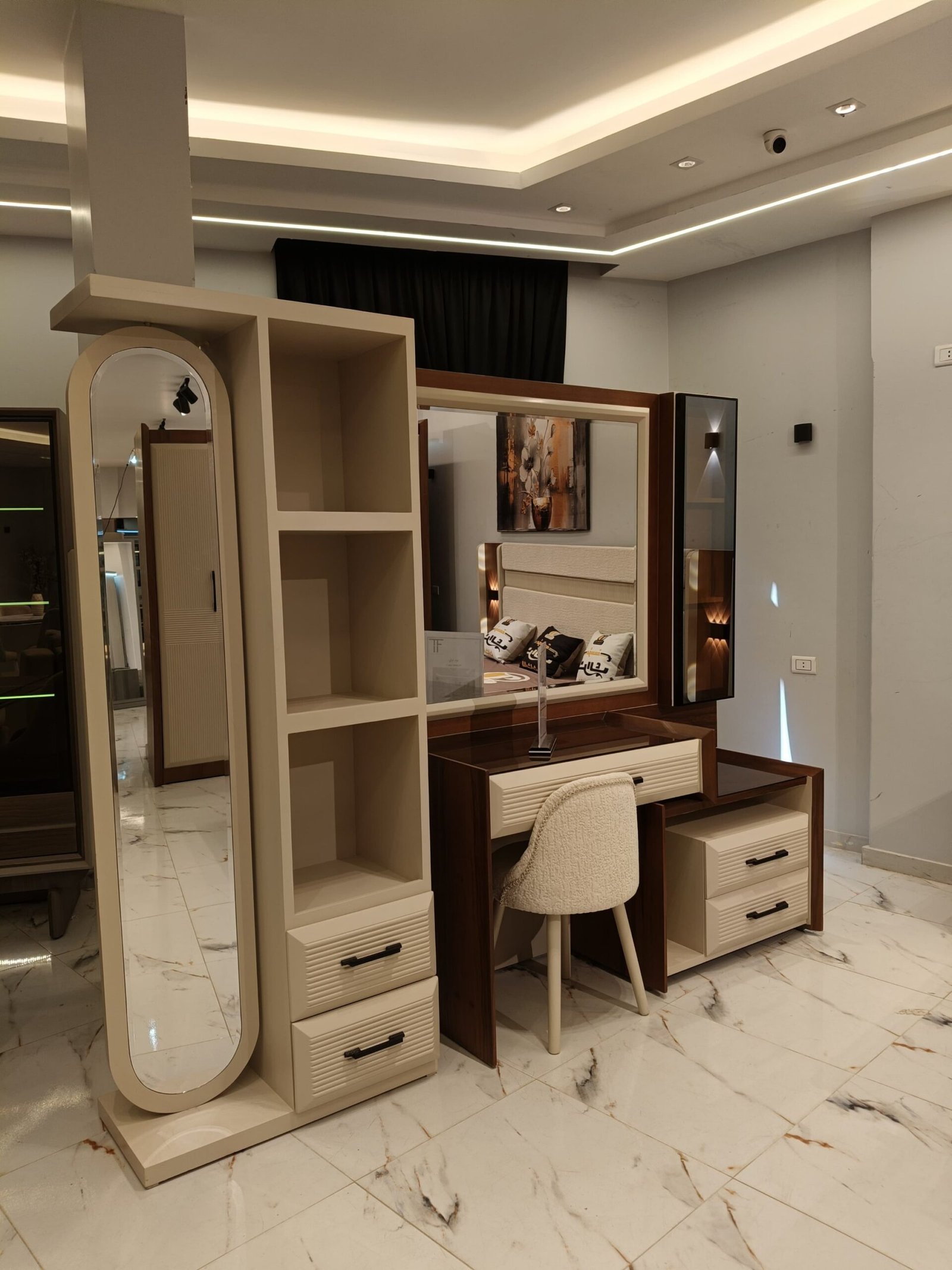 غرفه نوم ليالي غرفه ماستر بمساحات تخزين قويه جدا سعرها مميز اخشاب طبيعيه من الزان الاحمر الروماني فينش وتشطيب عالي جدا مكونه من السرير اثنين كومود دولاب تسريحه بانكت وشماعه مميزه جدا